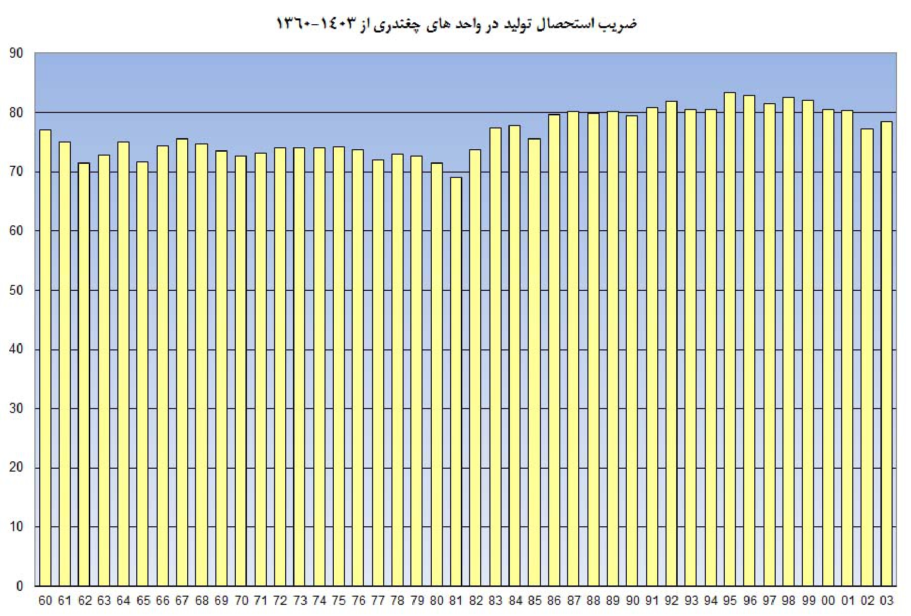 - در دهه ۹۰ و اوایل ۱۴۰۰ ضریب استحصال در بازه ۷۹ تا ۸۳ درصد تثبیت شده و نوسانات جزئی داشته است.